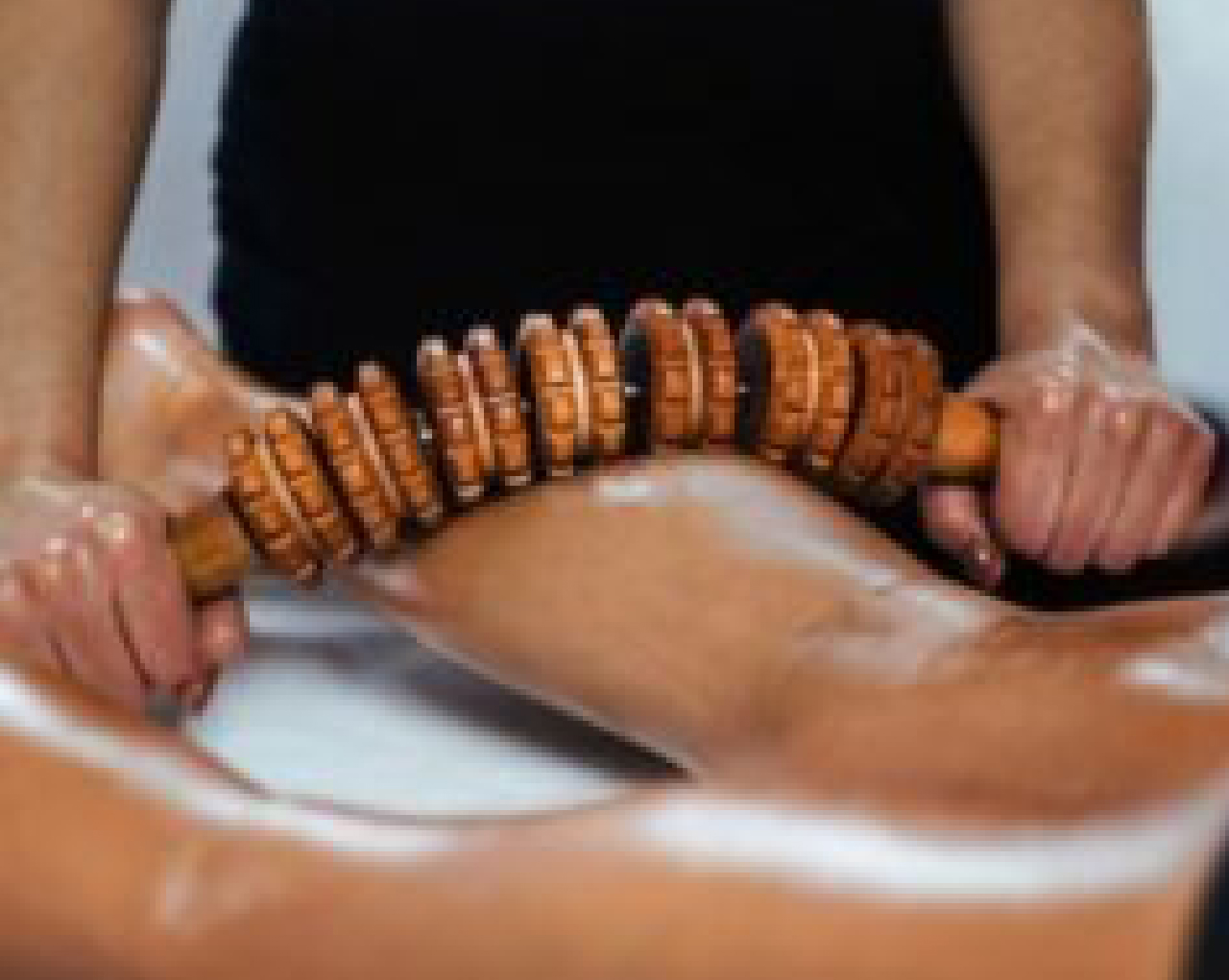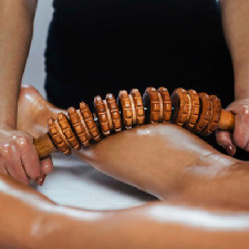 A massage technique that breaks down fat cells to lessen cellulite and targets particular body parts with wooden tools for body contouring.